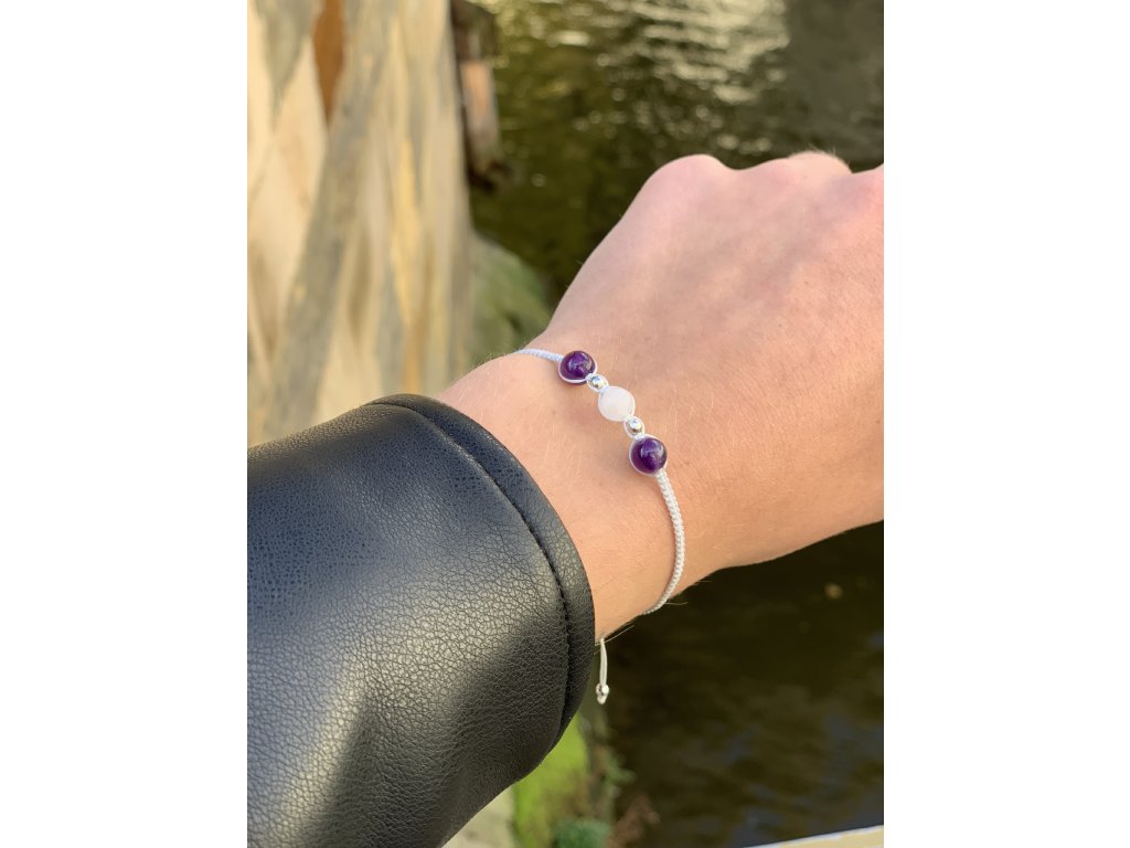 Použité minerály: korálky z přírodního Ametystu a Měsíčního kamene o průměru 6mm