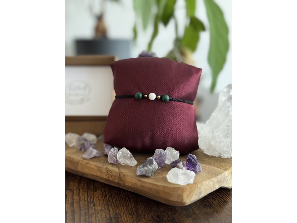 Kombinace Měsíčního kamene a Malachitu je velmi silná – spojuje ženskou intuici, citlivost a léčivou proměnu.